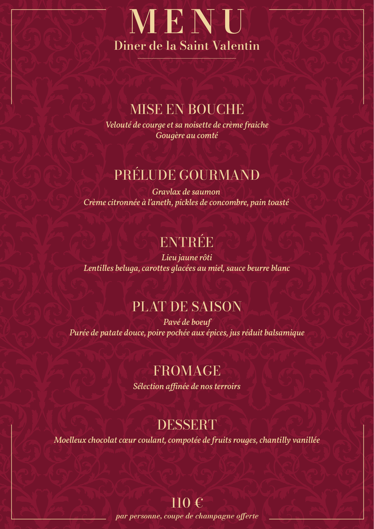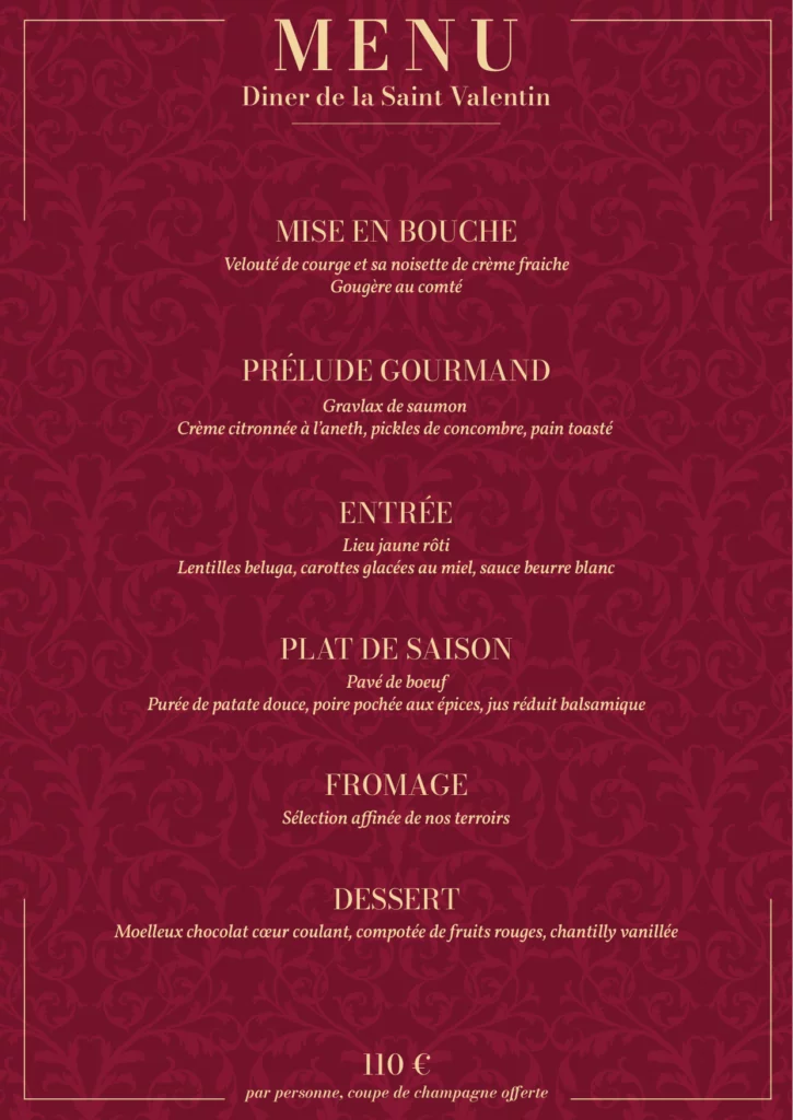 Menu unique à 55 € par personne
